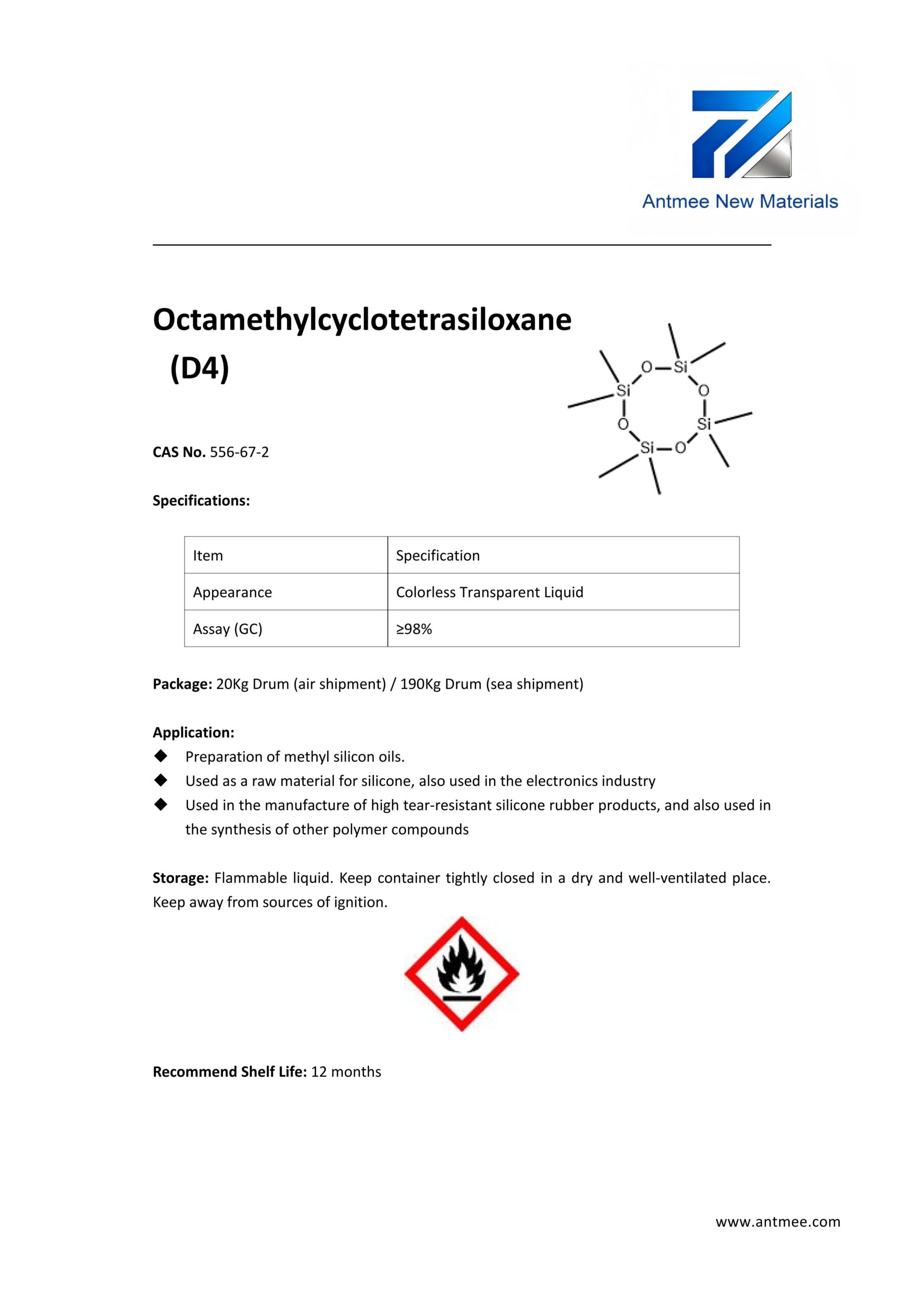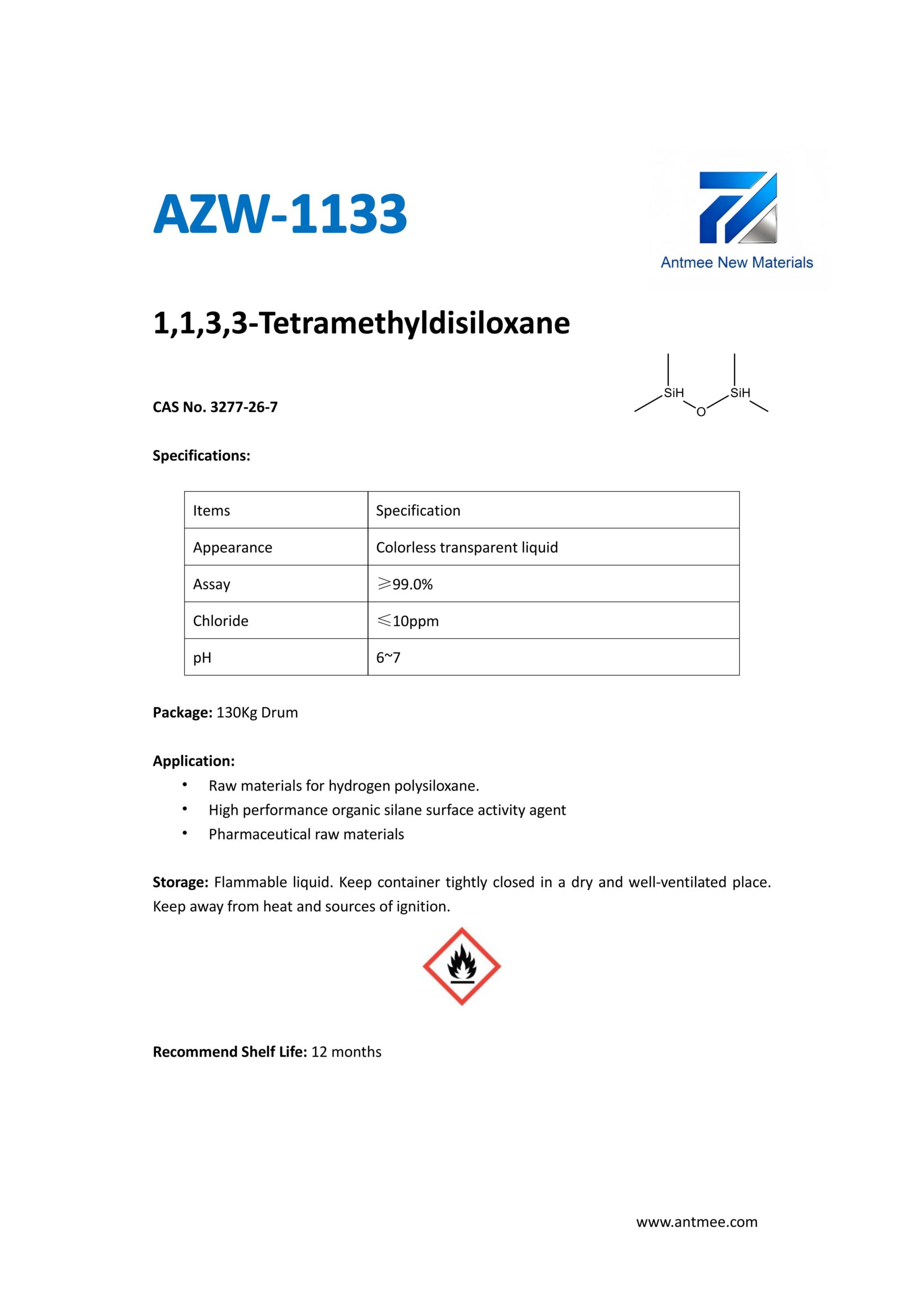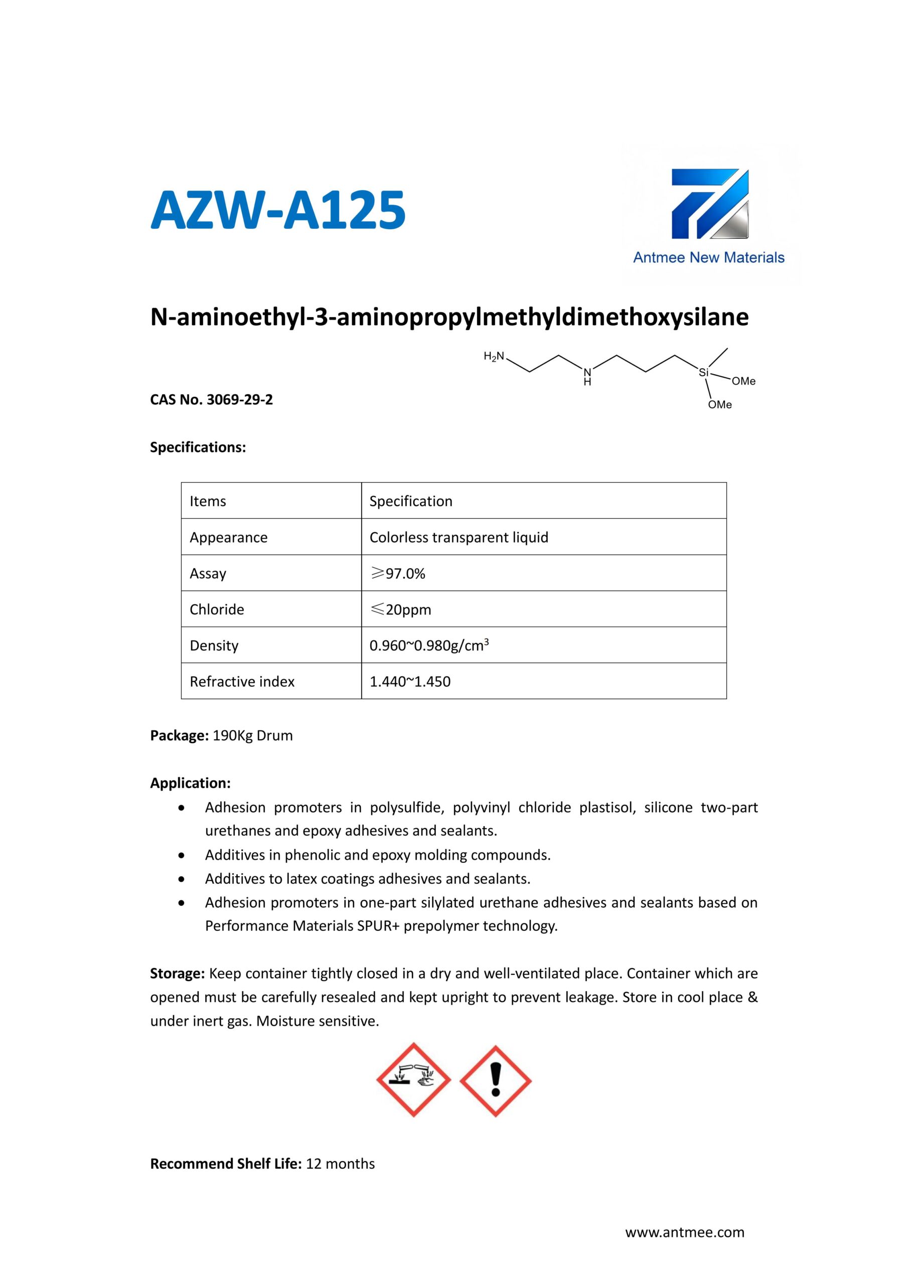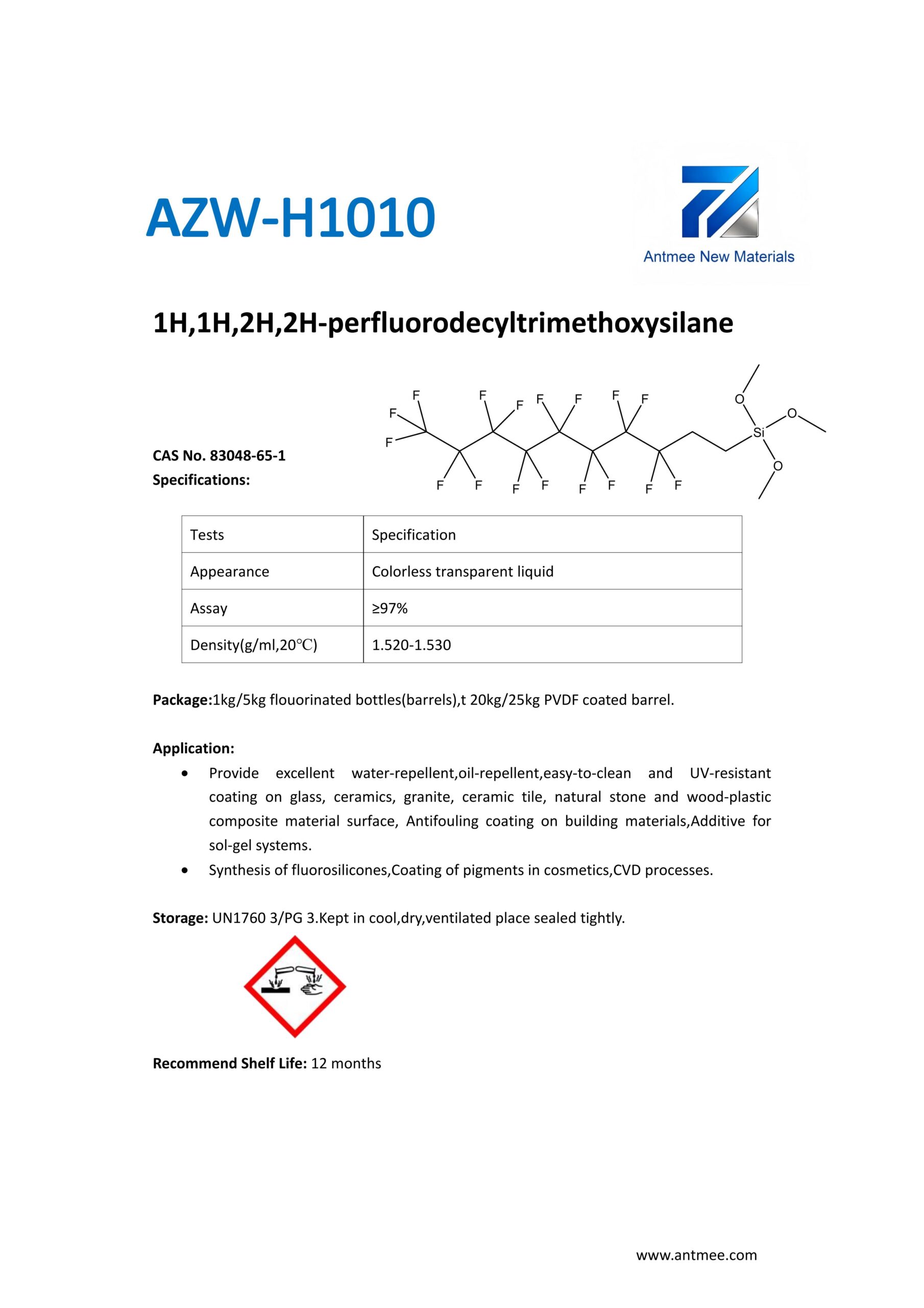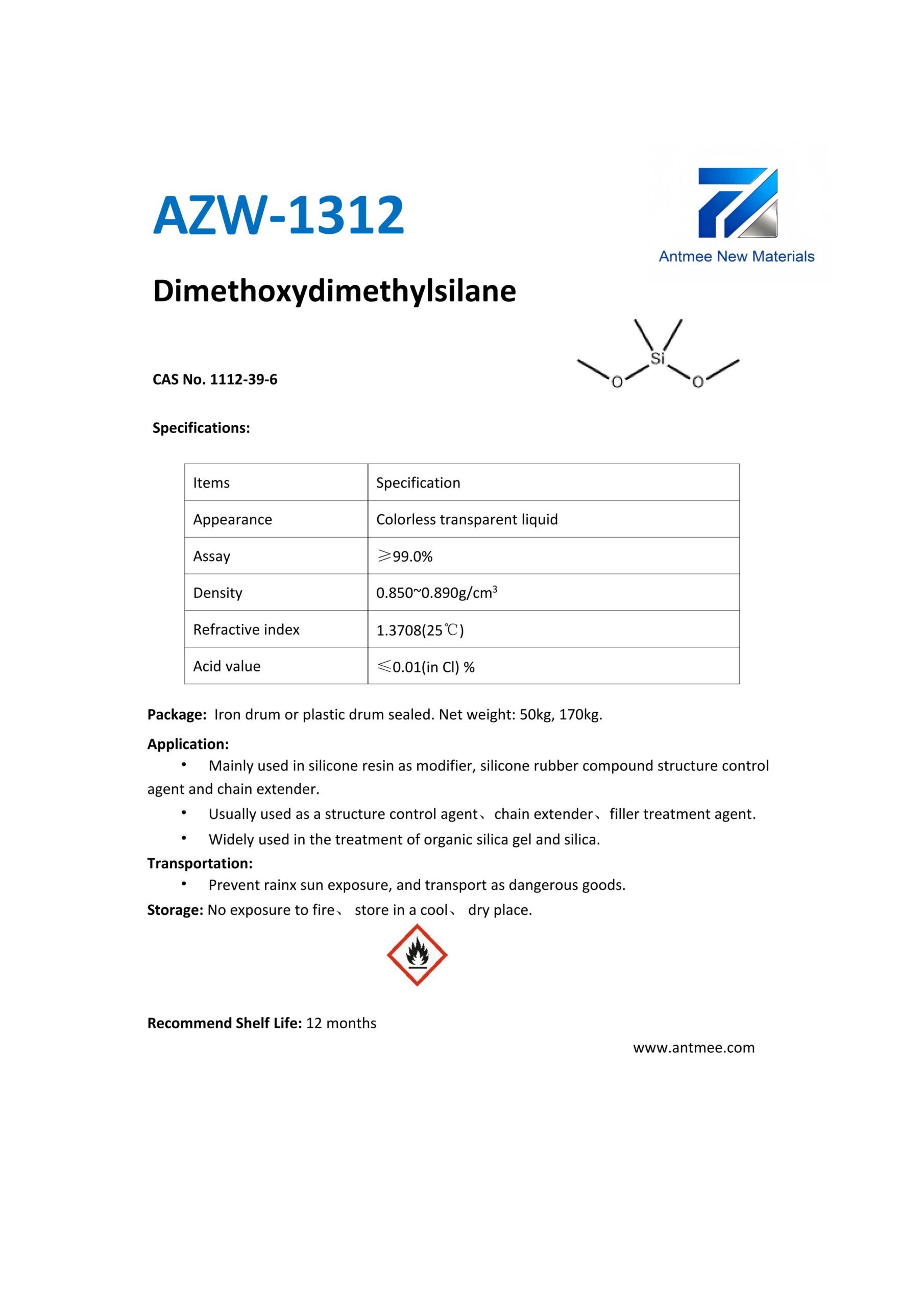 Silane Series Silane Series AZW-1412 CAS No. 2943-75-1N-octyltriethoxysilaneProduct details AZW-1423 CAS No. 17980-47-1iso-ButyltriethoxysilaneProduct details AZW-1111 CAS No.13822-56-53-AminopropyltrimethoxysilaneProduct details YAC-A112 CAS No.1760-24-3N-aminoethyl-3-aminopropyltrimethoxysilaneProduct details AZW-3110 CAS No.919-30-23-AMINOPROPYL TRI ETHOXY SILANEProduct details AZW-1323 CAS No. 24801-88-53-IsocyanatopropyltriethoxysilaneProduct details AZW-1050 CAS No. 15396-00-63-IsocyanatopropyltrimethoxysilaneProduct details AZW-1133 CAS No. 3277-26-71,1,3,3-TetramethyldisiloxaneProduct details AZW-H1010 CAS No. 83048-65-11H,1H,2H,2H-perfluorodecyltrimethoxysilaneProduct details AZW-C1150 CAS No. 17865-32-6CyclohexyldimethoxymethylsilaneProduct details AZW-1312 CAS No. 1112-39-6DimethoxydimethylsilaneProduct details AZW-A125 CAS No. 3069-29-2N-aminoethyl-3-aminopropylmethyldimethoxysilaneProduct details AZW-E233 CAS No. 3663-44-33-AminopropylmethyldimethoxysilaneProduct details AZW-C313 CAS No. 2530-87-23-ChloropropyltrimethoxysilaneProduct details AZW-O1848 CAS No. 2897-60-13-GlycidoxypropylmethyldiethoxysilaneProduct details AZW-0115 CAS No. 2530-83-83-GlycidoxypropyltrimethoxysilaneProduct details AZW-182 CAS No. 2530-85-03-MethacryloxypropyltrimethoxysilaneProduct details AZW-D4 CAS No. 556-67-2Octamethylcyclotetrasiloxane(D4)Product details AZW-AOS CAS No. 2224-33-1Vinyltris(methylethylketoxime)silaneProduct details AZW-D132 CAS No. 2768-02-7VinyltrimethoxysilaneProduct details Need Help with Easier Industrial Solutions? We Are Experts! Learn More